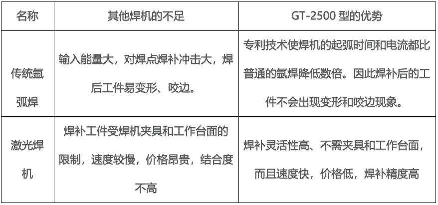 本設(shè)備可將儲(chǔ)存于電容器中的電能在瞬間通過(guò)脈沖電弧的形式釋放于鎢極與工件之間,溫度極高的電弧使金屬材料組成的工件和焊絲迅速熔化而熔接在一起,達(dá)到焊接焊補(bǔ)目的。高頻放電,瞬間放弧。優(yōu)點(diǎn)是:功率大、修補(bǔ)速度快、可廣泛應(yīng)用于各種鋼鐵、銅、鋁及相關(guān)合金的焊接和修補(bǔ),特別適用于較大量的修補(bǔ)。