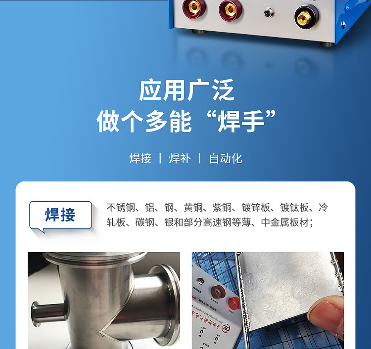 焊接:不銹鋼、鋁、鋼、黃銅、紫銅、鍍鋅板、鍍鈦板、冷軋板、碳鋼、銀和部分高速鋼等薄、中金屬板材;